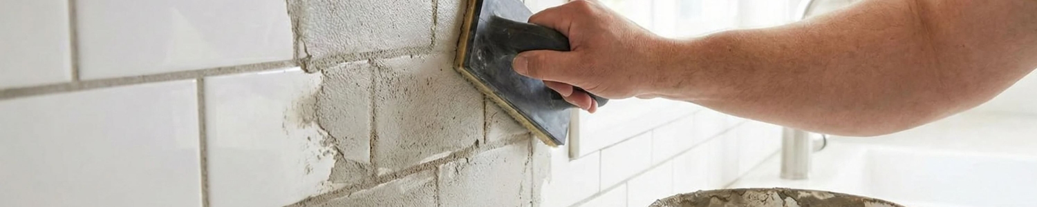 Nach der Anwendung wird überschüssiges Material von der Fliesenoberfläche mit einem trockenen Tuch oder einem feuchten Schwamm entfernt, wobei darauf geachtet wird, die Fugen nicht zu beschädigen.