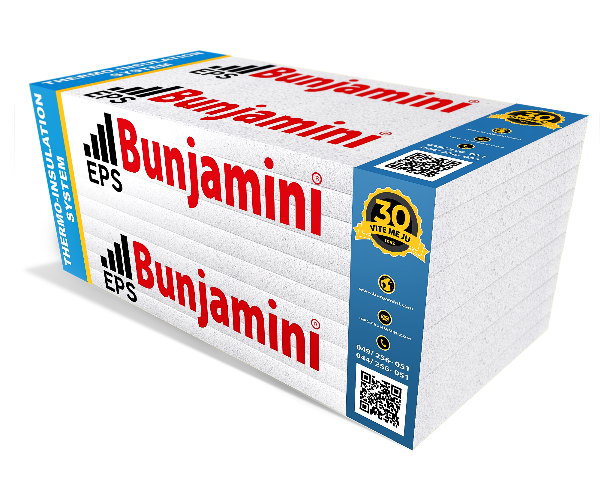 Bunjamini EPS është material izolues termik me performancë të lartë, i prodhuar nga polistiren i zgjeruar (Expanded Polystyrene), i projektuar për aplikime në fasada, dysheme, mure ndarëse dhe sisteme të ndryshme termoizoluese.