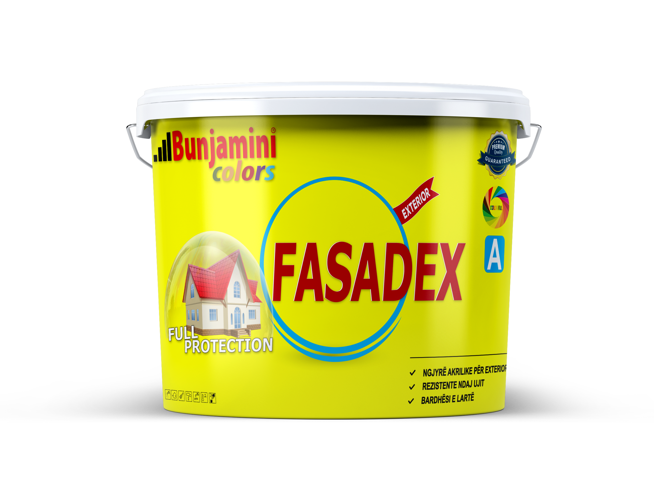 Fasadex është ngjyrë e lëngshme me cilësi të lartë për përdorim të jashtëm.Krijon një mbulim të bukur dhe të qëndrueshëm.Rezistente ndaj kushteve atmosferike (reshjeve, temperaturave të larta dhe të ulëta, si dhe rrezeve të diellit).Me aftësi difuzioni (lejon frymëmarrjen e sipërfaqes). Elastike. Ekologjike. Mundëson formulimin e një game të gjerë ngjyrash sipas dëshirës.